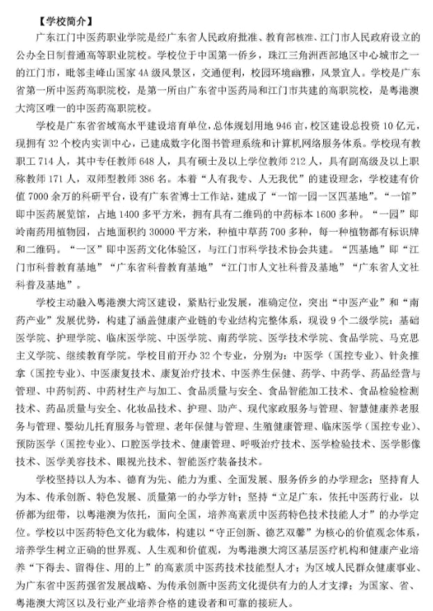 广东江门中医药职业学院2024年春季高考招生简章